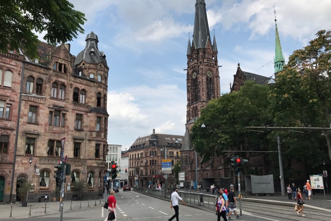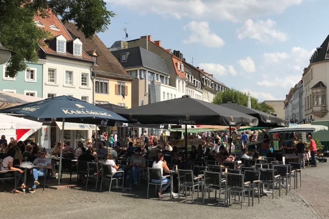 Die Hauptstadt Saarbrücken ist das Ziel meiner Reise, genauer gesagt der Ort von der Heydt nördlich davon. Mein Zug (Frankfurt - Paris) kommt Samstagmittag an, so dass ich noch genug Zeit für die Stadtbesichtigungsrunde in der Landeshauptstadt habe. Schönstes Sommerwetter füllt die Freischankflächen vor den Lokalen. Ich mache Pause an der Saar und betrachte das kleine Parlament. Putzig würde der Österreicher sagen. Basilica St. Johann, Hochzeiten im Stundentakt. Ich folge einer Hochzeitgesellschaft über die Steinerne Brücke zum Schloss. Feiern sollen sie mal alleine. Meine Kleidung würde an der Hochzeitstafel nicht passen.