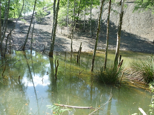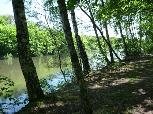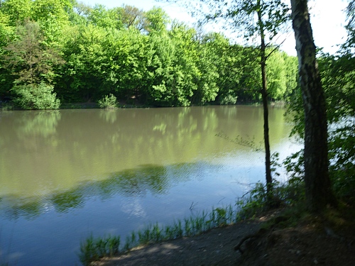 Wetterschächt am Rande. Die Grube Franziska war hier wohl. Im Fischbachtal wurden für die Grube Jägersfreude große Flächen als Absinkweiher genutzt (1961). Sieben Jahre später endete die Förderung. Jetzt ein wunderbarer Fischteich, das Frischwasser wird 30 Meter hochgepumt. Das Wasser riecht wie der Rhein.