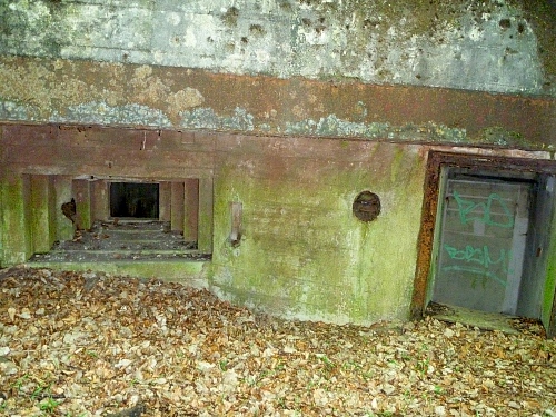 Bergmannssiedlung Brefeld, es geht entlang der Bahnstrecke. Oft sind entlang der Laufstrecke Bunker im Wald verborgen, doch jetzt sind die Bunker, die einst die Kohletransporte bewachten, regelrecht aufgereit. Keiner der Bunker ist gesprengt worden. Was hatten die Franzosen damit vor? Ich muss natürlich da runter klettern und in die Eingänge stiefeln, Fotos schießen. Vielleicht liegen hier noch Skelette oder Helme mit Einschußlöchern. Eigenartig der stählerne Geschützturm, witzig das Spinnennetz vor der Scharte.