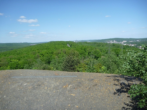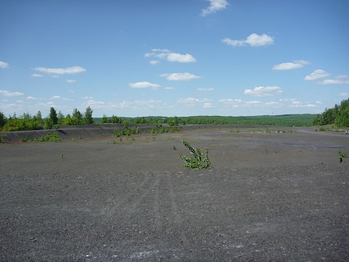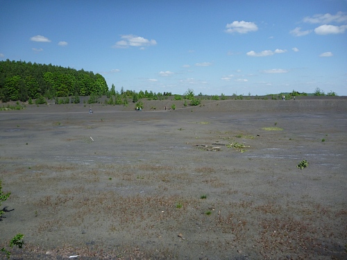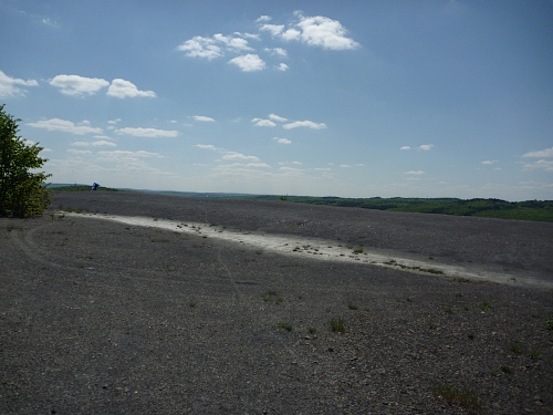 Diese Halde wurde schon als Tafelberg angelegt, um die Sauerstoffzufuhr so klein wie möglich zu halten. Doch auch ohne Schwelbrand liegt die innere Temperatur bei 70 bis 430 Grad, ähnlich wie im Inneren eines feuchten Komposthaufens. Am Horizont sieht man Dudweiler mit dem unsichtbar brennenden Flöz.