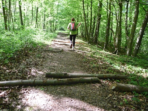 Die Nauwiese ist ein Überbleibsel der ursprünglichen Nutzung des Saargebietes. Der Kolbenhof wurde allerdings im 30jährigen Krieg verwüstet. Vielleicht geht es nun nur noch abwärts, ich habe auf Tunnelblick geschaltet, bin fertig. Er ist hart, verdammt hart der Hartfüsslertrail. Jeder hat ihn unterschätzt. Aber die grandiose, abwechslungsreiche Welt hat mich verdammt froh gemacht. Dazu die herrlichen Singletrails und Laufaufgaben, die sich gewaschen haben. Wer macht sich die Mühe, auf Kilometer weit Baumstämme auf den Weg zu legen? In unserem Zustand sind das schon fast unüberwindbare Hindernisse.
