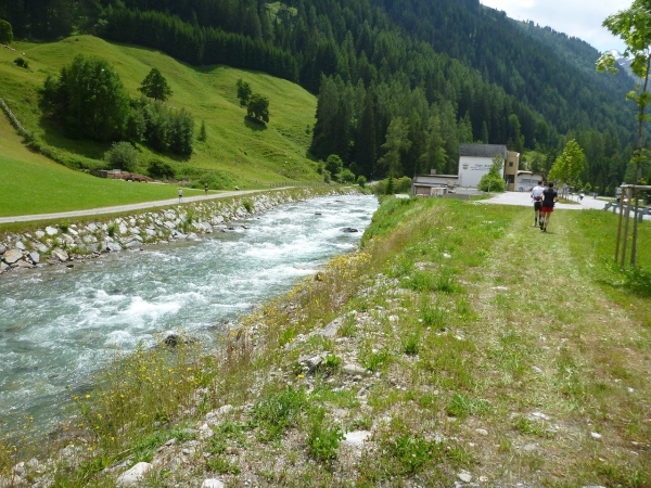 Der Fahrweg entlang der Rosanna ist gut ausgebaut, fast eine Schnellstraße für uns. Die Rosanna ist ein Gebirgsbach, der, haltet euch fest, 42,2 Kilometer lang ist. Er entspringt in der Nähe des Muttenjochs und fließt nordöstlich bis St. Anton, dreht ein wenig weiter nach Osten ein und vereinigt sich später mit der Trisanna (aus dem Paznauntal) zur Sanna und mündet dann in Landeck in den Inn.