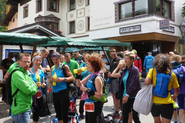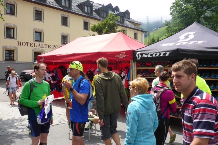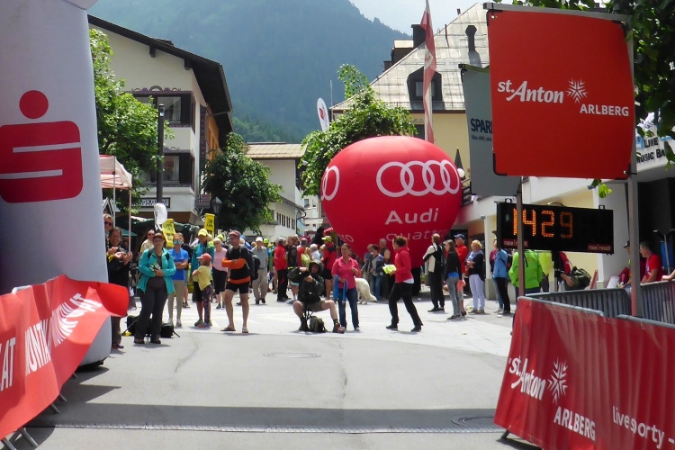 Ein paar Minuten später bin ich im Arlberg-well, in das wir Läufer kostenlos dürfen. Dort liege ich dann sehr lange im Außenbecken im Wasser und plaudere mit anderen Läufern über Erlebnisse und gemeinsame Laufbekannte. Dann kommt auch Annette. Sie hat mit dem Wetter nicht ganz so viel Glück wie ich, der Regen erwischt sie voll nur einen Kilometer vor dem Ziel.