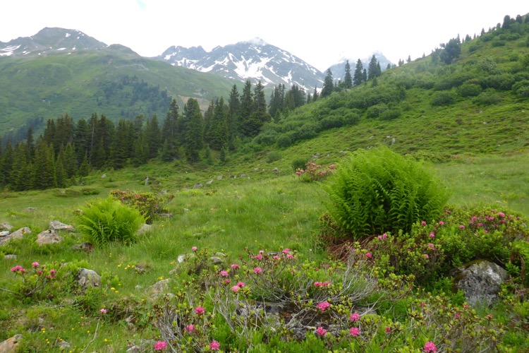 Bei der Konstanzer Hütte auf 1688 m ist die nächste Verpflegungsstelle. Die ursprüngliche Konstanzer Hütte stand über 100 Jahre etwa 700 vom heutigen Standort entfernt. Dann wurde sie von einer Mure zerstör und 1989/90 am Rand eines kleine Hochmoores neu erbaut.