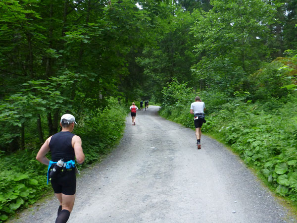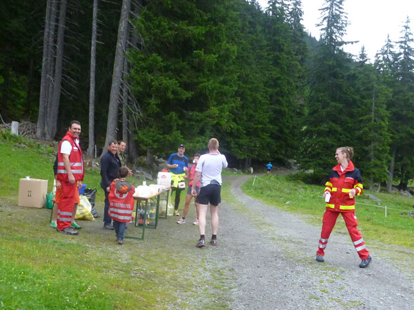 An der nachfolgenden VP haben wir mit absolvierten 22 Kilometern, bereits mehr als die Hälfte unserer Strecke geschafft. Abgesichert wird das Ganze mit einer elektronischen Zeitmessung. Ab hier kommen auch wieder die Freunde des schnellen Schrittes auf ihre Kosten. Auf einem bequemen Forstweg geht es bergab.