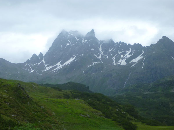 Die Aussicht nach oben – wird gewaltig, vor uns türmt sich die mächtige Felspyramide des Patteriol auf. Matterhorn von St. Anton wird er auch genannt, er ist einer der acht Dreitausender des Verwalls.