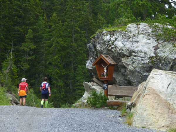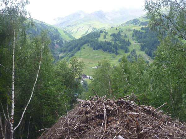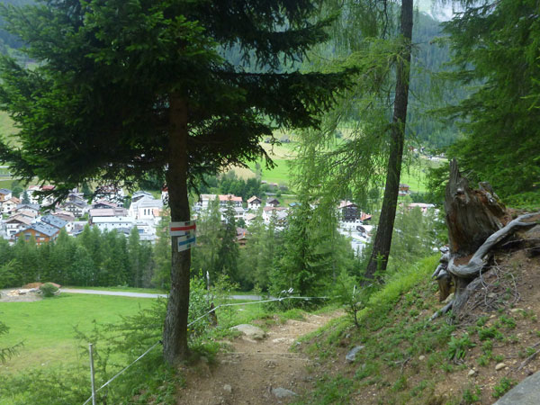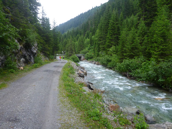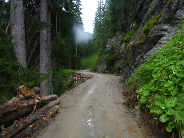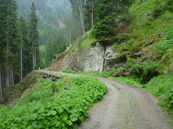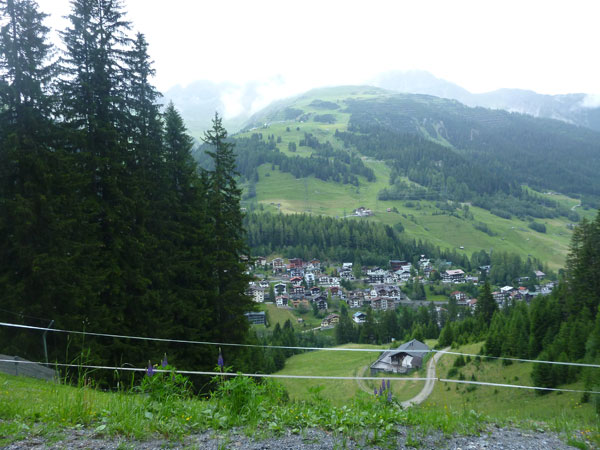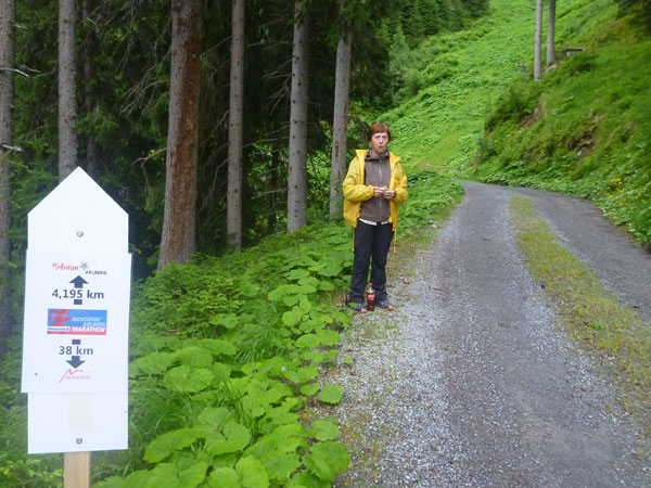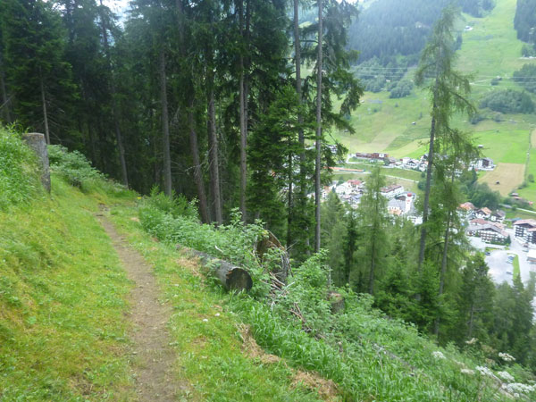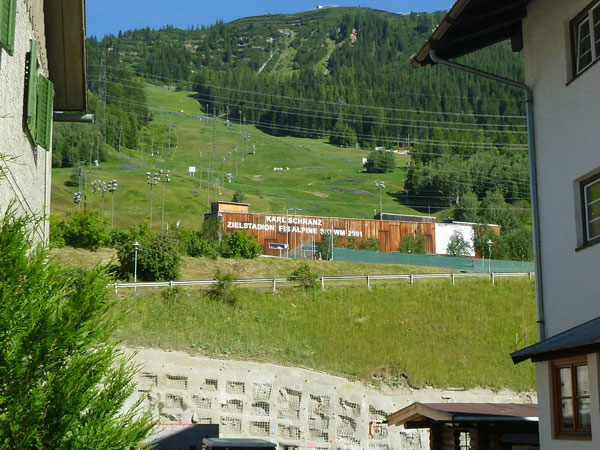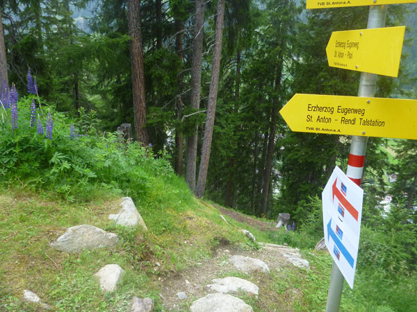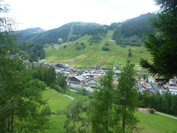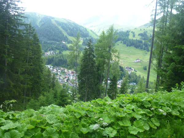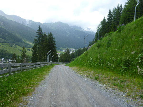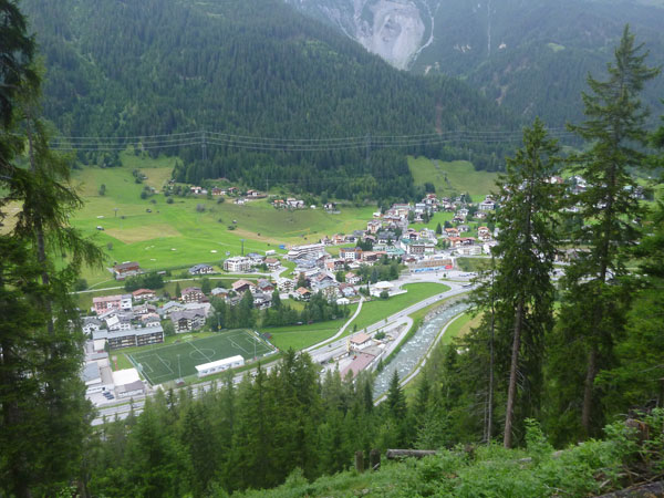 Irgendwo unter uns im Berg liegt der Arlbergtunnel, den wir, ohne genau zu wissen wo, zweimal überqueren. Mit fast 14 km Länge ist er der längste Straßentunnel Österreichs. Lücken im Baumbestand ermöglichen uns erste Blicke auf St. Anton und sporadisch kann man bereits Wortfetzen des Zielsprechers vernehmen.