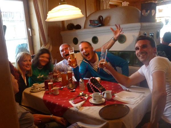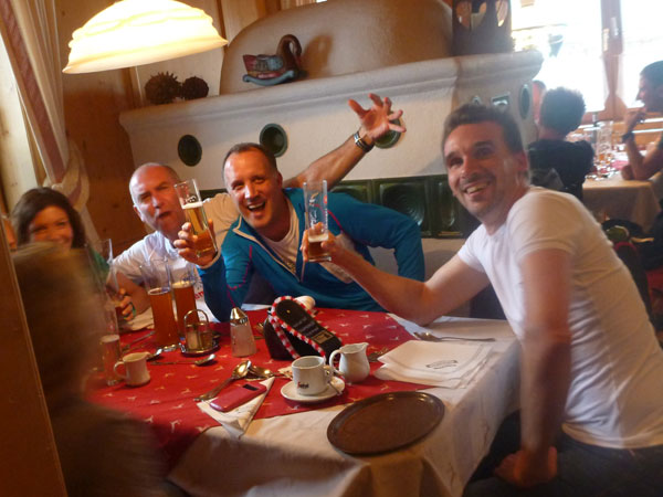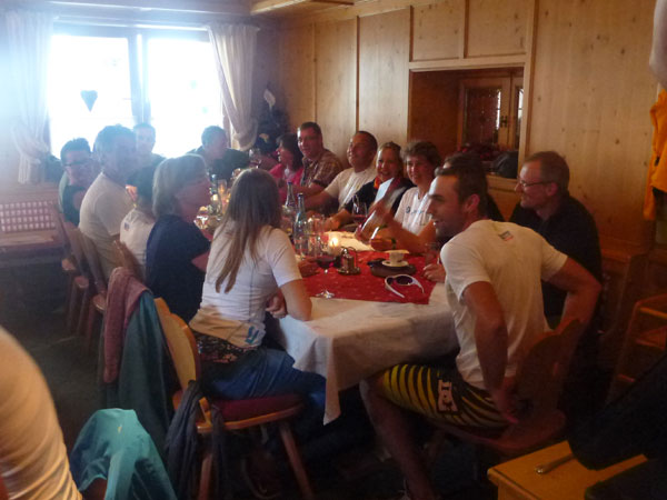 Nachdem die Herausforderung erfolgreich gemeistert ist, gibt es für alle Teilnehmer am frühen Abend noch die Möglichkeit, bei der After Party in der Dorfstubn ausgiebig zu feiern. Für einen Unkostenbeitrag von 12,- Euro bekommen wir ein mehrgängiges Abendessen serviert. So findet der herrliche Tag ein wohlverdientes Ende.