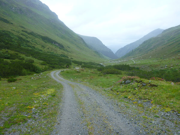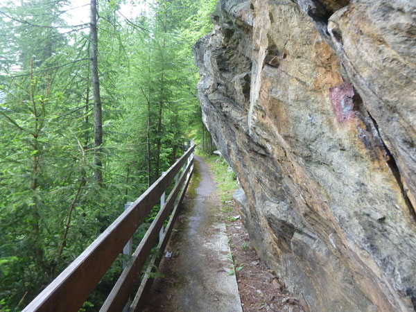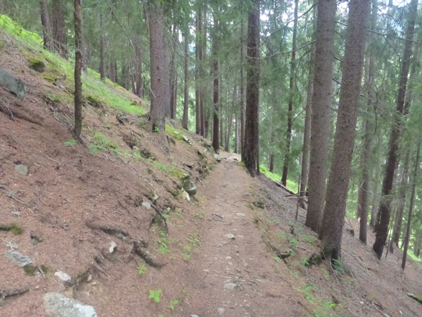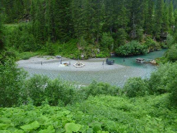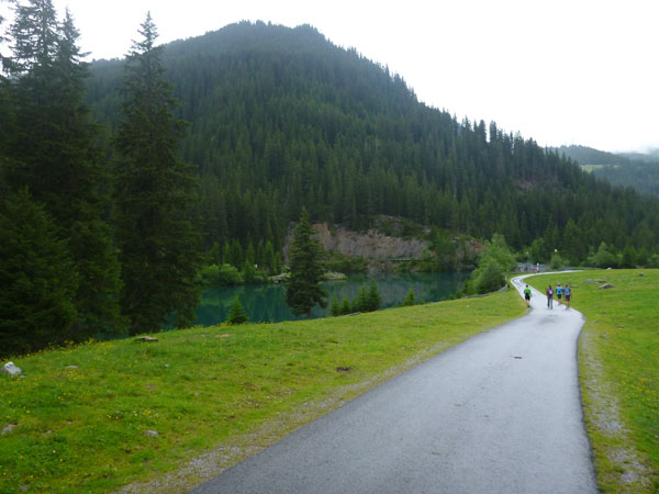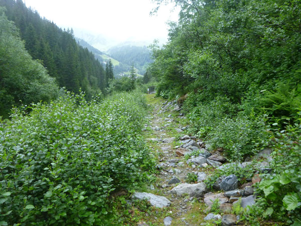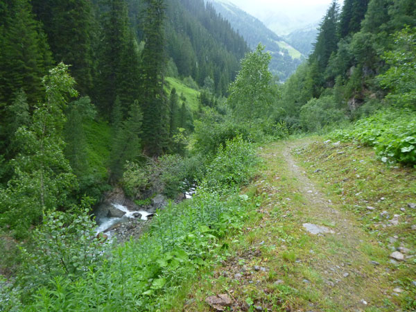 Nach einem kurzen Anstieg geht unser Downhill neben der Rosannaschlucht weiter, jetzt aber mit einigen deutlich steileren Abschnitten. Am künstlich aufgestauten Verwallsee (km 30) ist damit erst einmal ein Ende erreicht. Der See dient der Regulierung der Rosanna zum Schutz vor Hochwasser und gleichzeitig auch zur Energiegewinnung.