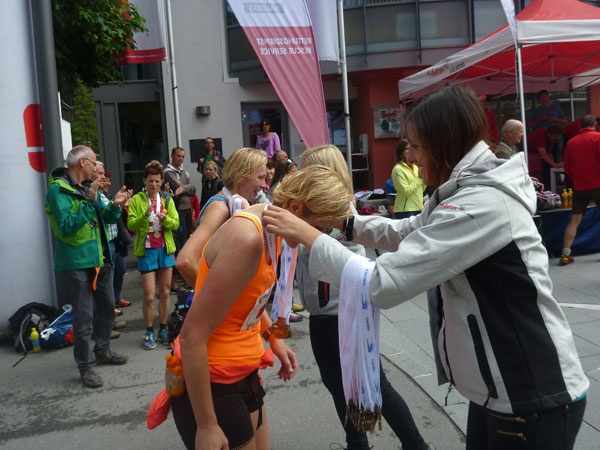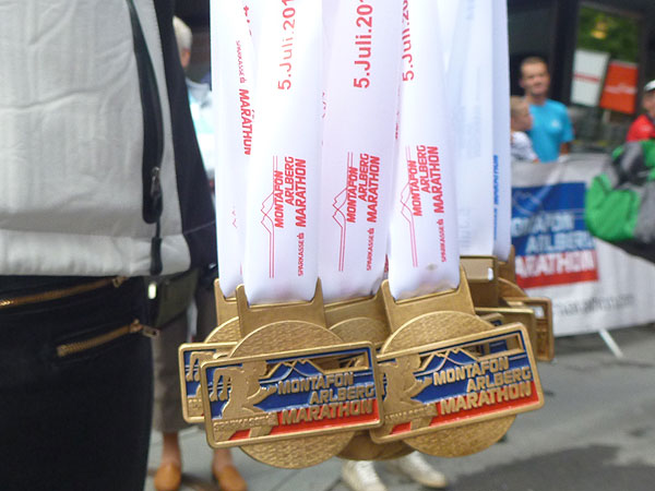Ich muss zugeben, nach früheren Berichten habe ich den Lauf etwas unterschätzt, die Verschärfung im Schlussabschnitt und die vielen gut zu laufenden Anstiege machen den Marathon zu einer echten Herausforderung. Das Ziel des Marathons erreichen heute 42 Damen und 196 Herren, auf der Strecke und auch in St. Anton wäre durchaus Platz für mehr Teilnehmer. Jeder Finisher bekommt eine Medaille und ein Shirt überreicht.
