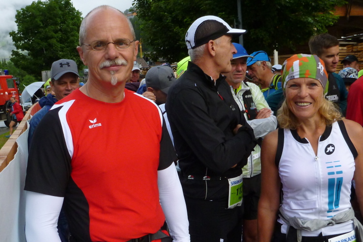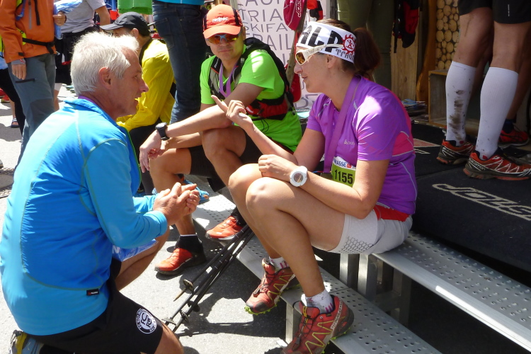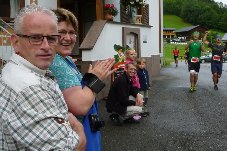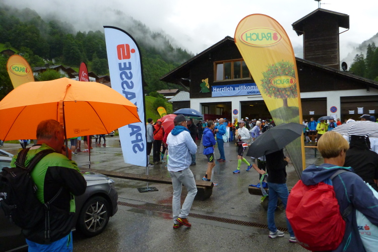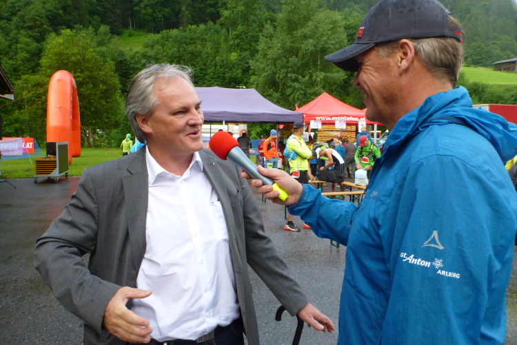 Umkleiden kann man sich in neben anliegenden Sportheim. Überrascht bin ich jedoch über die starke Beteiligung der Kinder (über 100), die hier auf spielerische Weise an das Traillaufen herangeführt werden. Der Montafon Arlberg Trail über 33 Kilometer, erst vor ein, zwei Jahren mit ins Programm aufgenommen, hat 200 Teilnehmer motivieren können. Ausdauernde Neulinge im Trail, für die ein Bergmarathon vielleicht zu schwer ist, können hier höhere Weihen bekommen. Für die geht der Streckenverlauf ohne Anfangsschleife in Silbertal und ohne Abstecher in den Sattelwald direkt nach St. Anton. Dieser Bewerb ist zahlenmäßig ein wenig stärker als der Marathon mit seinen knapp 190 angetretenen Läufern.