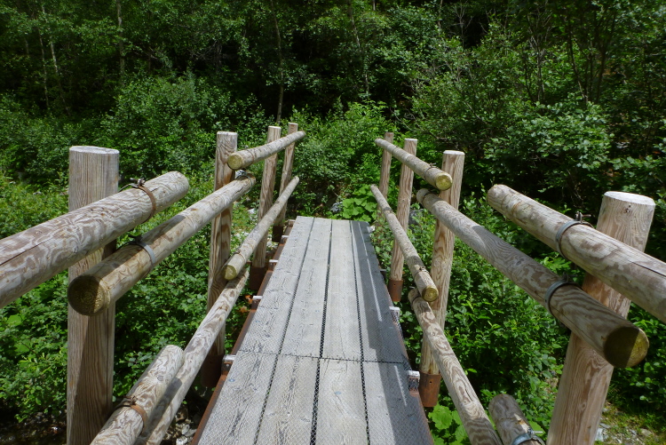 Nach einem Ab- und einem Aufschwung überqueren wir den Moosbach, wo wir den namensgebenden Sattelkopf (1985 Meter) zur Hälfte umrundet haben. Wir verlassen nun den Sattelbachweg und biegen scharf links ins Moostal ab. Um auf das Niveau der Holzbrücke zu kommen, muss ich eine Stufe von etwa 30 Zentimeter überwinden. Nur knapp entgehe ich einem Muskelkrampf und einer unsanften Landung, weil ich den Fuß zu wenig hebe und hängenbleibe. Später warten noch als Zuckerl rund 30 Treppenstufen bergab. Noch fünf Kilometer.