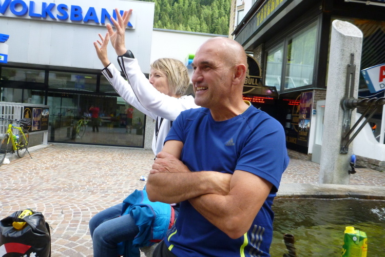 Zum Duschen, Schwimmen und Relaxen können wir das angrenzende Freizeitbad benützen. Ich bleibe noch im Zielbereich und sehe viele fröhliche Sportler bei ihrem Zieleinlauf. Lachen muss ich jedoch, als einer seine Vereinkollegen ins Ziel mit einem Weizen lockt.