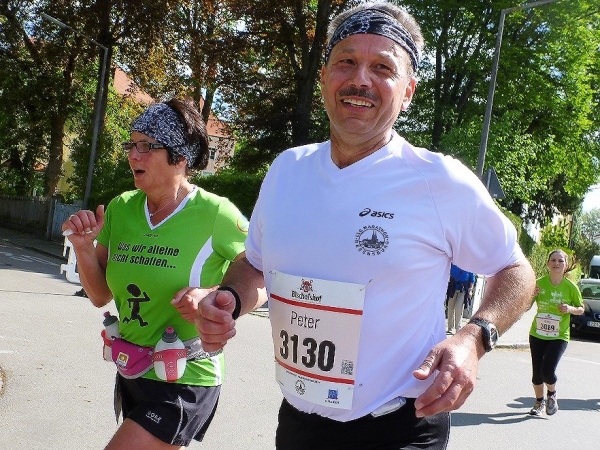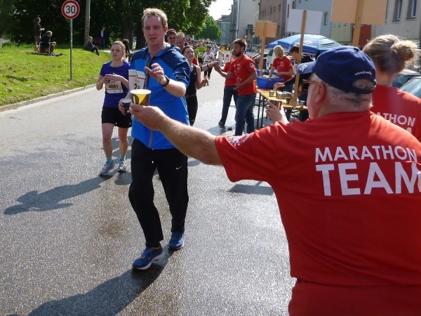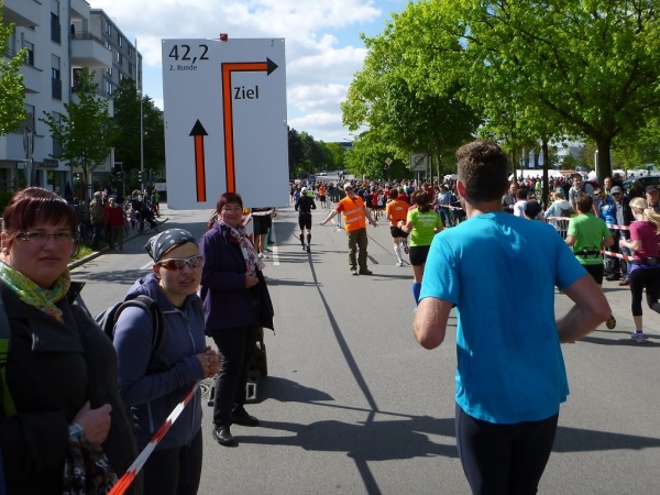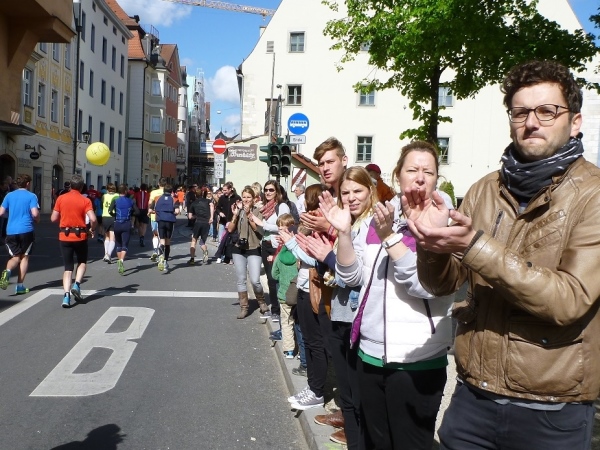In der Altstadt spielt vor einer alten Wirtschaft einer mit seiner Quetschn. Den letzten Drive hole ich mir bei Kilometer 39 mit einem frischen Weizenbier an der letzten Tanke. Blinker links gesetzt und kurz danach kann ich den Zugläufer überholen. Selbst eine kurzer Boxenstopp bringt mich nicht mehr in Zeitnot, so dass ich nach 3.42 Stunden unter dem Zielbanner durchlaufe. Des war jetzt a gscheits aaf und dafo. Meine Zeit auf der zweiten Hälfte dürft ihr jetzt errechnen.