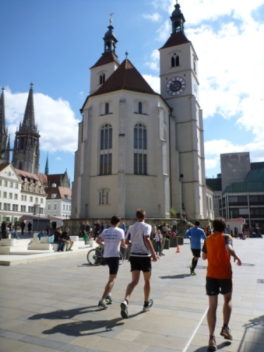 Das meiste habe ich nun gesehen und will es jetzt laufen lassen. „Aaf und dafo“ würde der Regensburger zu meinem Vorhaben sagen. Mit einem Affen hat der Ausspruch nichts zu tun, es heißt schlicht „auf und davon“. Der 4-Stunden-Pacer ist jetzt ein paar Meter hinter mir. Ich bin gespannt, was beim Laufen auf Zug noch für eine Zeit heraus springen wird.