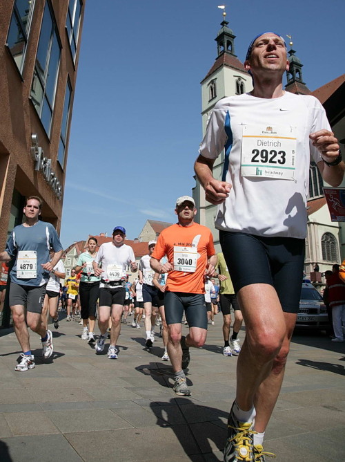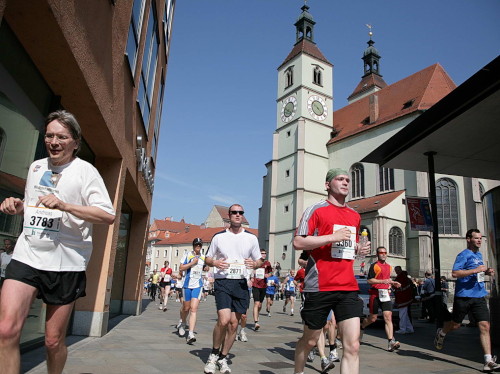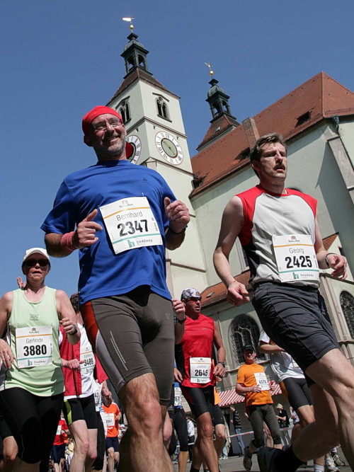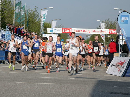 Rund tausend Marathonis kommen diesmal in den Genuss des Wassers und der 42,195 Kilometer, etwas weniger als im Vorjahr. Aber Konkurrenz ist an diesem Wochenende auch vorhanden, immerhin lockt mit Mainz eine richtige Meisterschaft, Düsseldorf und Hannover laufen auch. Aber was juckt das einen volljährigen Marathon? Regensburg startet jedenfalls selbstbewusst um Halbneun, weit bevor die Sonne ihre ganze Kraft entfalten kann.