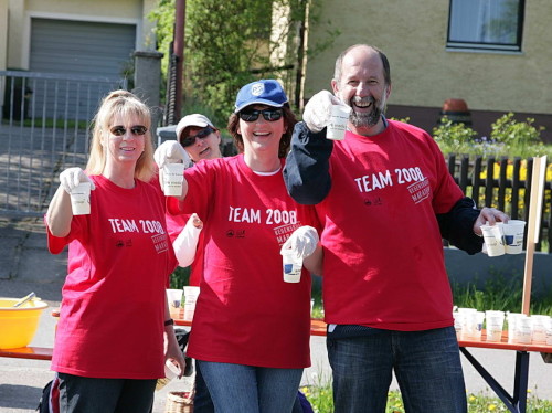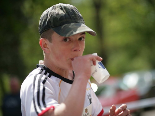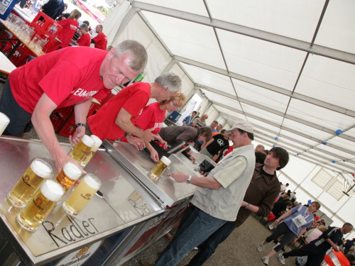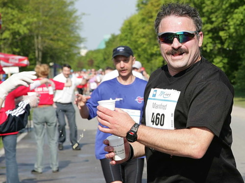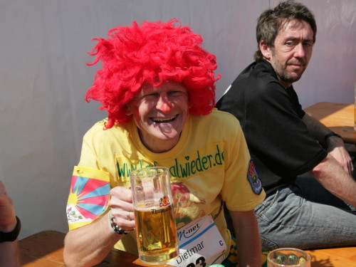 Der sonntägliche Sonnenschein läßt bereits erahnen, wie warm es diesmal werden könnte, doch die Organisatoren haben vorgesorgt: direkt aus langen Leitungsrohren können sich die Teilnehmer vor und nach dem Wettkampf gutes Regensburger Trinkwasser zapfen, sich erfrischen. Dadurch bleibt nebenbei gesagt auch viel Plastikmüll erspart.