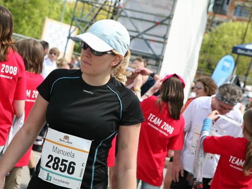 Start und Ziel des Regensburg-Marathons sind am Westbad. Das muss man nicht kennen, nur soviel: wer nicht mit dem Auto anreist und möglicherweise ein Hotel in der Innenstadt gebucht hat, wird sich vielleicht etwas ärgern. Am Samstag geht´s mit dem Bus noch problemlos zum Festplatz, doch am Renn-Sonntag wird es eng: viele Zufahrtsstraßen sind gesperrt, Busse fahren um die frühe Uhrzeit schon gar nicht, und ein Shuttle-Verkehr von der City zum Westbad wird vom Veranstalter nicht angeboten. Also machen in der Folge die Taxi-Unternehmer ein feines Geschäft. Fast im Minutentakt pendeln die Taxis von den Hotels der Innenstadt zum Start - Fahrgäste sind meist leicht bekleidete Zeitgenossen mit Chip am Fuß und Kleidertüte unterm Arm.