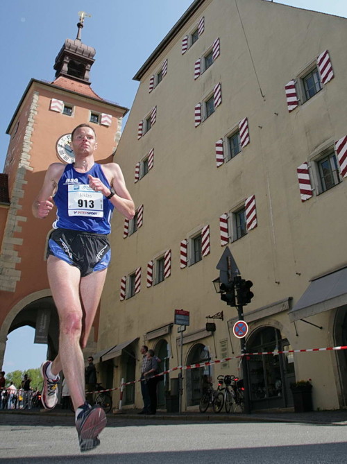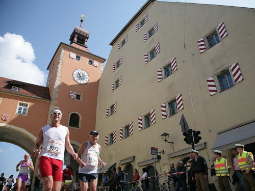 Wann ist ein Marathon erwachsen? Klar, werden manche sagen, wenn er volljährig geworden ist. Und das ist er in der Tat, der Regensburger Marathon. Zum achtzehnten Mal ging er über die Bühne, wie fast überall in Deutschland bei grandiosem Bilderbuch-Wetter. Oder Kaiserwetter? Schließlich sind wir in Mittelbayern. Unmittelbar an der Donau. Eigentlich ein klassischer Stadtmarathon, möchte man meinen. Doch ganz so ist es dann doch nicht, eher eine Mischung aus Stadt, Land, Fluss bzw. Donau. Wer sich eine Laufstrecke inmitten der Altstadt wünscht, vorbei an urigen Gemäuern, der wird enttäuscht sein. Denn das läuferische Sightseeing beschränkt sich auf ein paar wenige Kilometer zu Beginn und gegen Ende des Marathons. Andererseits kann der Anblick von Dom und Steinerner Brücke durchaus motivierend wirken, wenn die Kraft nachlässt und die Ziellinie langsam lockt.