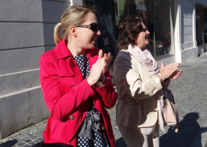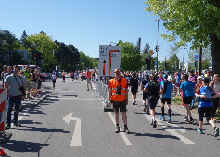 Am Ostentor dann ein freundlicher Helfer, der mir die Möglichkeit offeriert, auf den Dreiviertelmarathon umzusteigen. Am Beginn meiner Laufkarriere habe ich solche Strecken geliebt, wie sie beispielsweise auch in Lienz/Osttirol angeboten wurden, da man leichter durchhält und sich die Begegnung mit dem "Hammermann" erspart. 269 Teilnehmer haben sich für diese Variante entschieden. Der Läufer mit der großen 42 auf dem Shirt, der mit mir die Tempoverschärfung mitgegangen ist, biegt auch hier ab. Ein Downgrade vom Marathon zum ¾ oder Halben ist möglich.