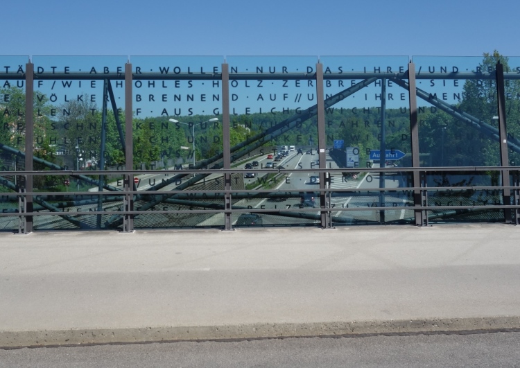Mit Blick auf den Eisernen Steg geht es wieder an die Donau. Die Boote der Wassersportler wiegen sich im kühlen Nass. Die Donau fließt hier durch drei Arme, wobei der nördlichste mit der Schleuse die Frachtschifffahrt aufnimmt und die Verbindung nach Kelheim zum Rhein-Main-Donau-Kanal herstellt. Wir kommen zum Weinweg, der an der Donau leicht linksgekrümmt entlang führt. Ja, nicht nur in Franken, sondern auch in Altbayern wird seit Jahrhunderten Wein angebaut. Der sogenannte Baierwein war einst wegen seiner Säure berüchtigt und wurde auch scherzhaft als "Dreimännerwein" bezeichnet: Ein Mann trinkt, schüttelt sich ob des Essiggeschmacks und muss daher von zwei weiteren Männern festgehalten werden. So stand es zumindest auf einer Infotafel. Im 17. Jahrhundert lief das Bier dem einheimischen Wein den Rang ab. Heute wird der Baierwein in Regensburg und Umgebung auf der mit 20 km kürzesten Weinstraße Deutschlands angebaut, mit schmackhafteren Rebsorten als früher und bei steigender Nachfrage. Wie es aktuell um den Säuregehalt bestellt ist, müssen wir bei einem nächsten Besuch einmal testen.