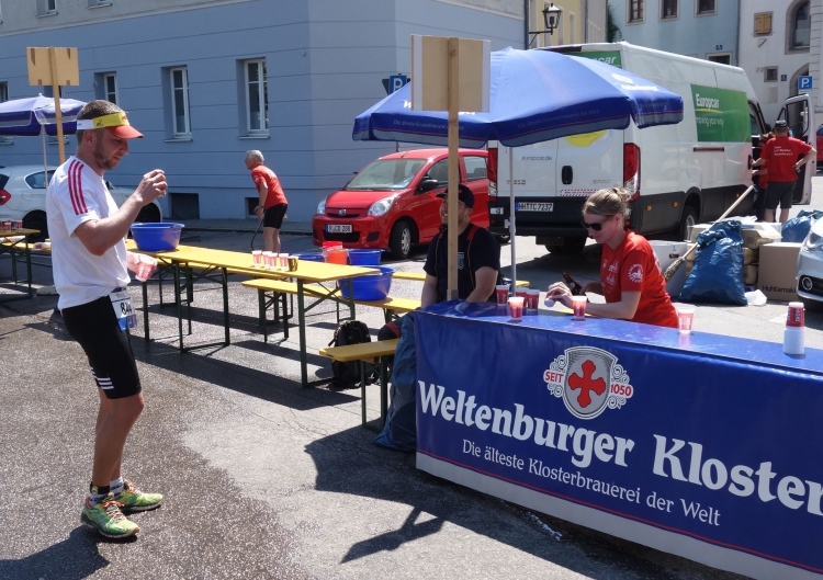 Und dann ist Genießen im Biergarten neben dem Ziel angesagt. Es gibt viele Köstlichkeiten zu guten Preisen. Eine große Portion Pasta erhalten Teilnehmer am Samstag oder Sonntag umsonst. Doch leider auch hier: alkoholfreies Weltenburger ist "aus". Wir begrüßen den letzten Finisher und machen uns dann zufrieden auf die Heimfahrt. Ich komme wieder, meine 4:19 Stunden aus dem Jahr 2004 wollen unterboten werden.