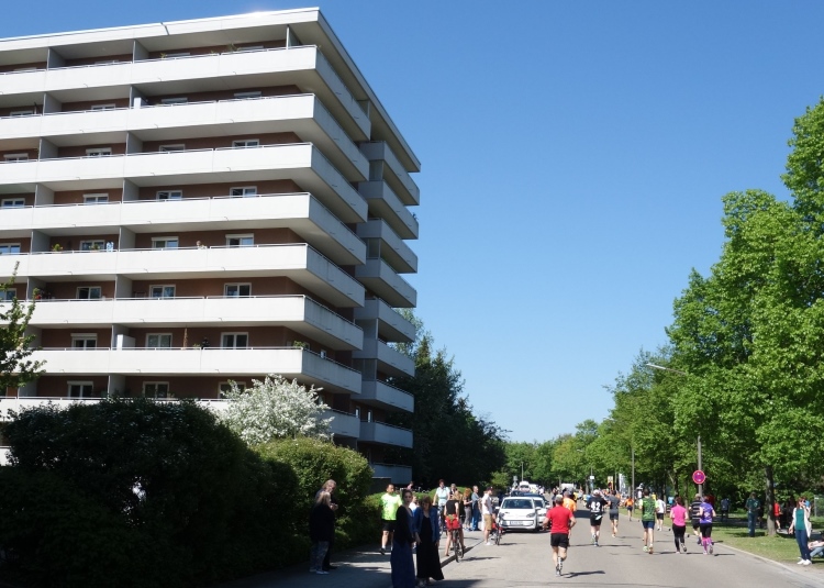 Zurück auf die vierspurige Straubinger Straße. Hier hat sich manches verändert in den letzten zwölf Jahren: viele neue Wohnungen auf der rechten Seite, ein Seniorenwohnheim mit dem süßen Namen Candis. Dahinter die Reste der Fabrik Südzucker – aha, da besteht wohl ein Zusammenhang. An der Irler Höhe noch mal durch Wohngebiete. Dann fordert die Industrie ihren Tribut. Junge Mädchen bauen Menschenpyramiden. Das dazugehörige Percussion-Ensemble hat sich in den Schatten verzogen.