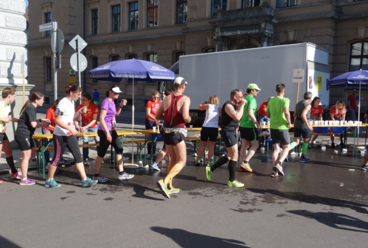 Mein Projekt Aufholen kann ich mir abschminken. Heute ist nicht mein Tag. Ich falle in einen 7- Minuten-Schnitt. Beim Marathon ist alles möglich. Klar, dass einem da die paar Kilometer auf der langen Straubinger Straße viel länger vorkommen. Aber es gibt ja noch Verpflegungsstellen, auf die man sich freuen kann. Und man sieht wieder dieselben Zuschauergesichter. Irgendwann stelle ich mich auch mal an eine Marathonstrecke und klatsche vier Stunden lang.