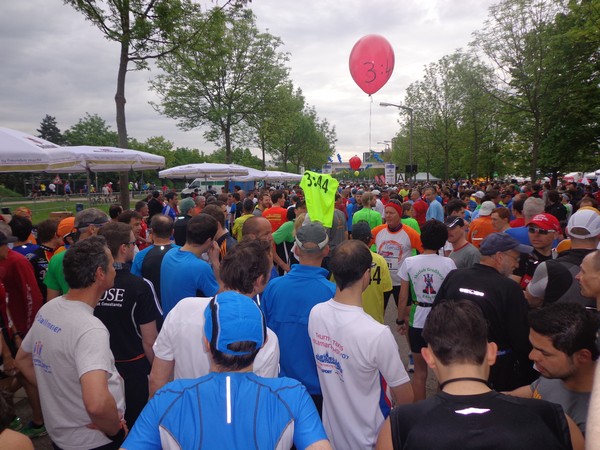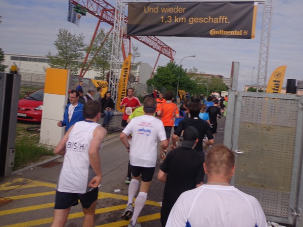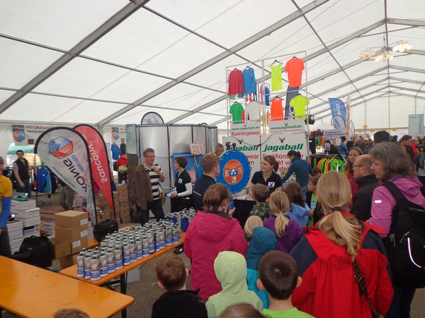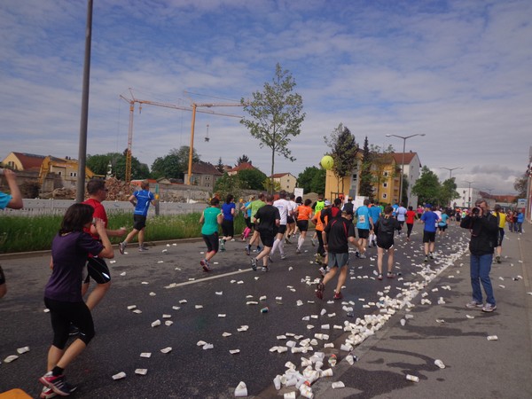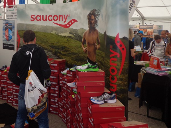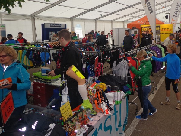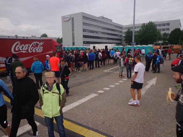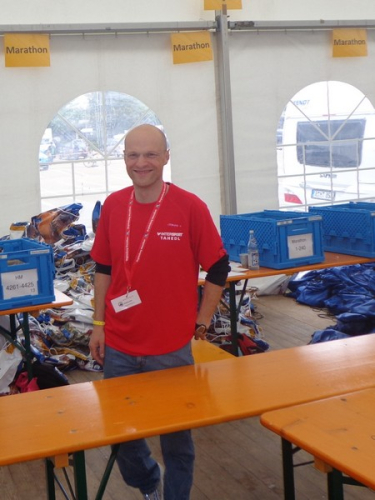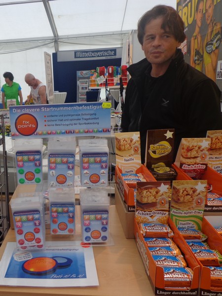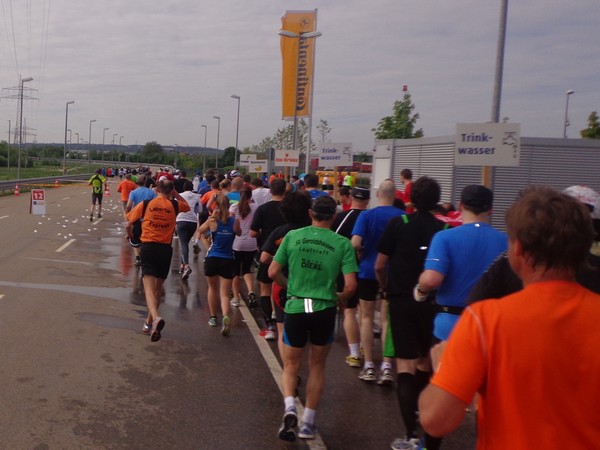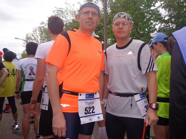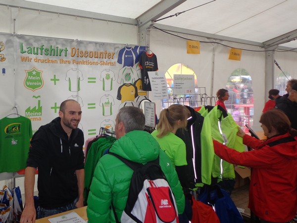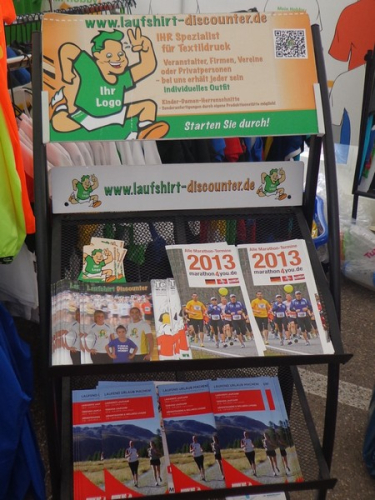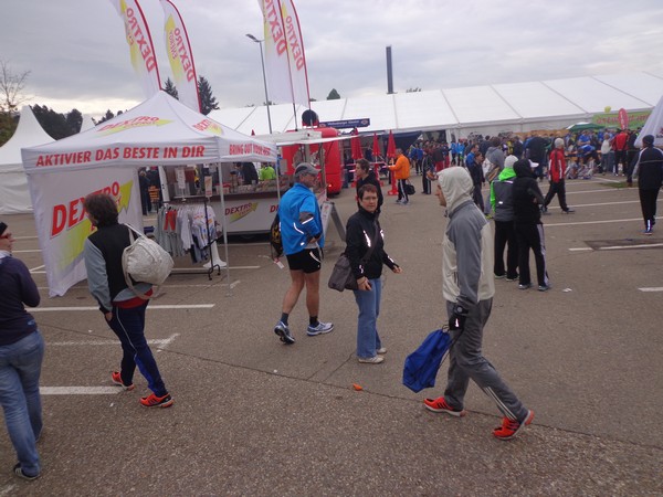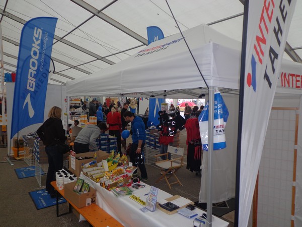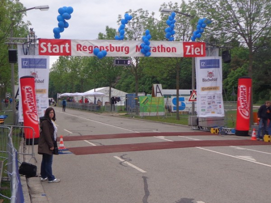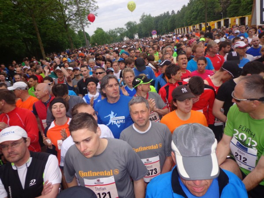 Strahlender Sonnenschein am frühen Morgen des 12. Mai. Geralds Wohnung liegt äußerst günstig zu Start und Ziel, ein kurzer Spaziergang und ich bin da. Eine Live-Band baut gerade ihre Bühne auf, die Sonne hat sich versteckt. Die Sport-Messe im Zelt hat schon geöffnet. Draußen hat es keine 10 Grad, so halten sich viele im Zelt auf. 669 Marathonläufer waren am Samstag angemeldet, 2426 über die halbe Distanz.
