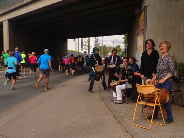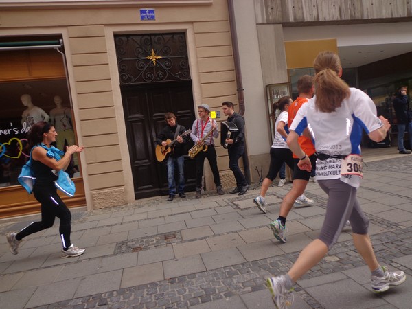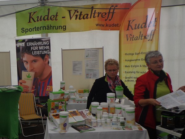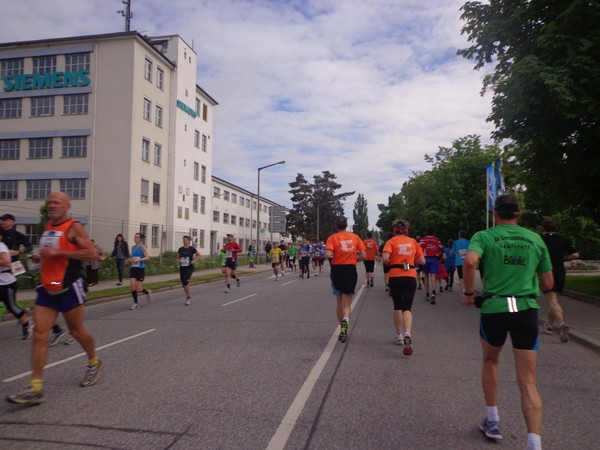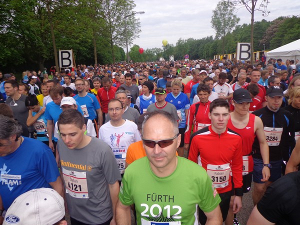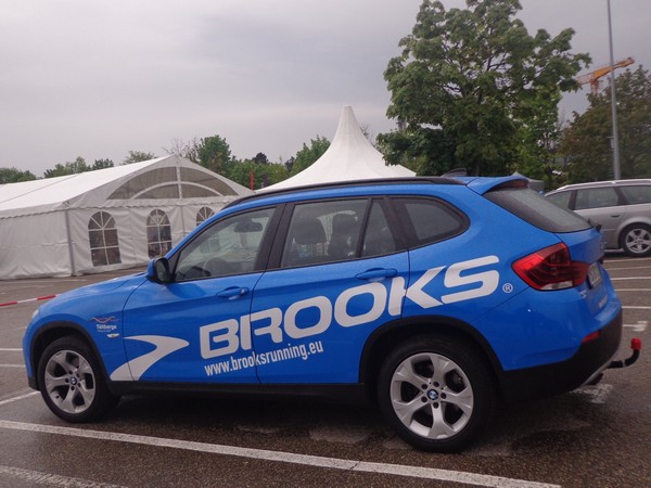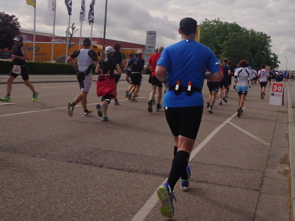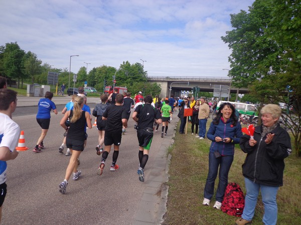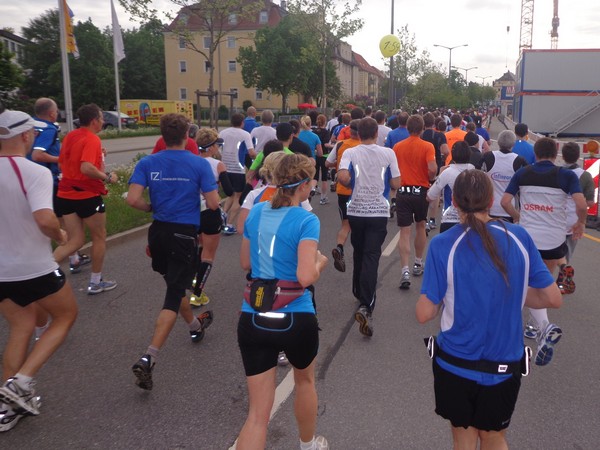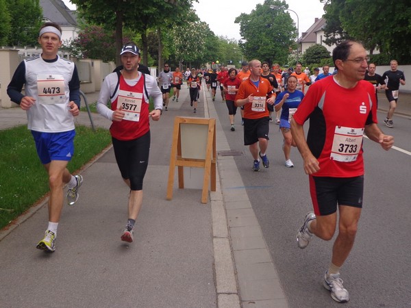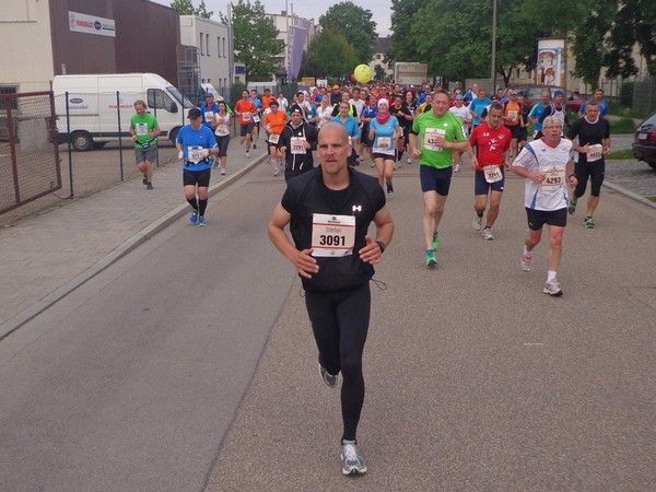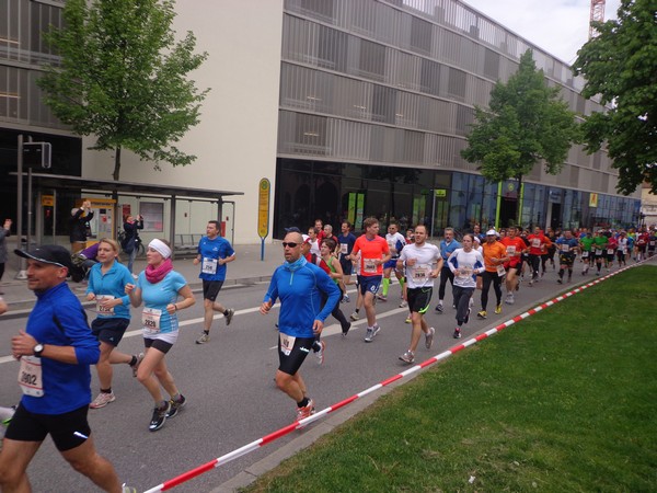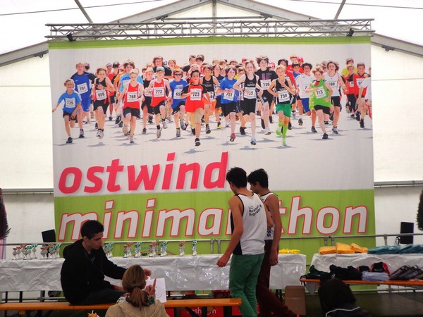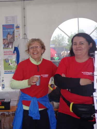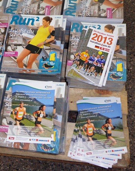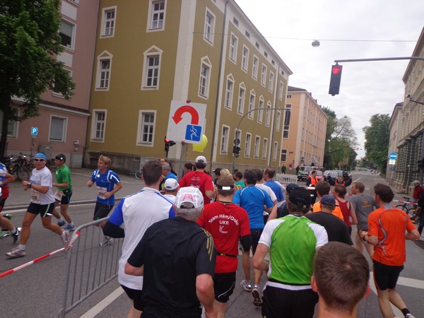 Strahlender Sonnenschein am frühen Morgen des 12. Mai. Geralds Wohnung liegt äußerst günstig zu Start und Ziel, ein kurzer Spaziergang und ich bin da. Eine Live-Band baut gerade ihre Bühne auf, die Sonne hat sich versteckt. Die Sport-Messe im Zelt hat schon geöffnet. Draußen hat es keine 10 Grad, so halten sich viele im Zelt auf. 669 Marathonläufer waren am Samstag angemeldet, 2426 über die halbe Distanz.