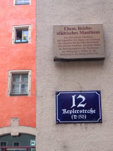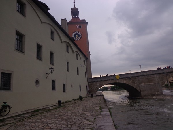 Als es später aufhört zu regnen, erkunde ich die Regensburger Altstadt, damit ich die Highlights der Strecke in Ruhe besichtigen kann. Die Altstadt ist UNESCO-Weltkulturerbe seit 2006. Ich finde das Kepler-Haus, der Astronom Johannes Kepler ist hier gestorben, Napoleon logierte 2 Tage lang gegenüber dem Dom und im Bischofshof sind Teile der Porta Praetoria sichtbar. Zur Zeit der Römer war hier an der Mündung des Regen in die Donau ein Römerlager.