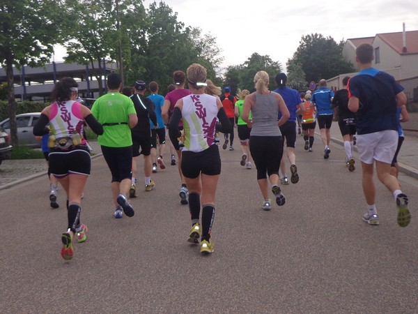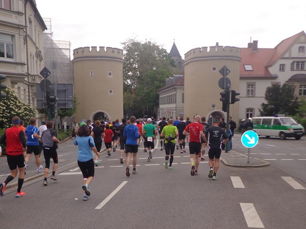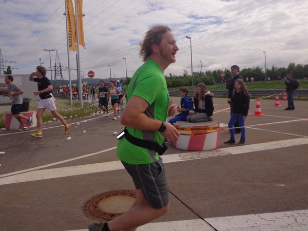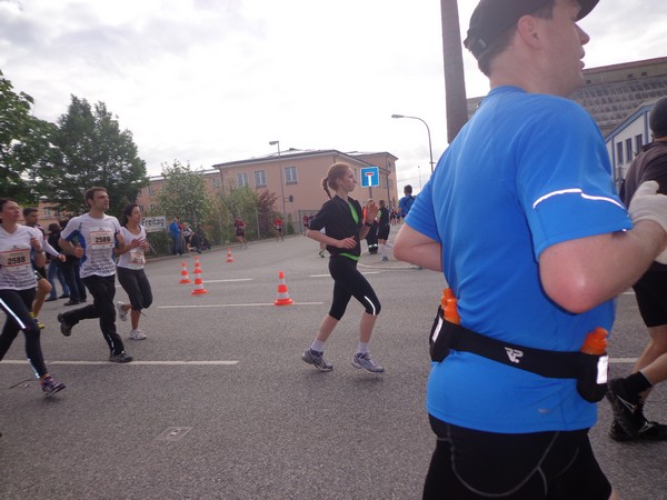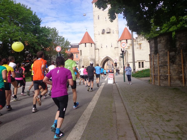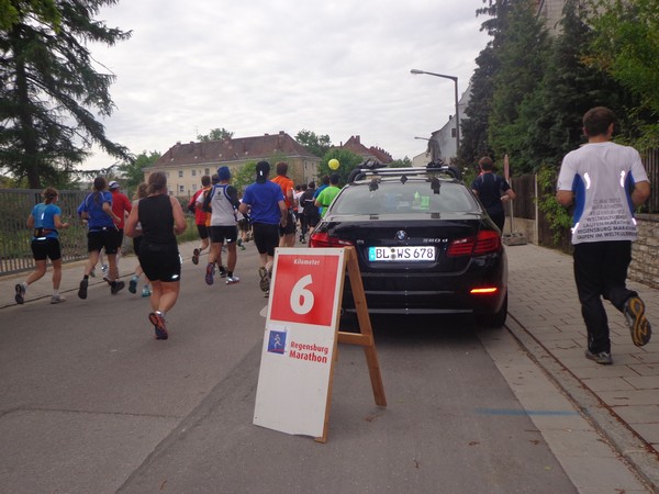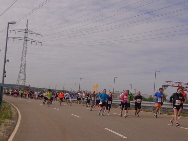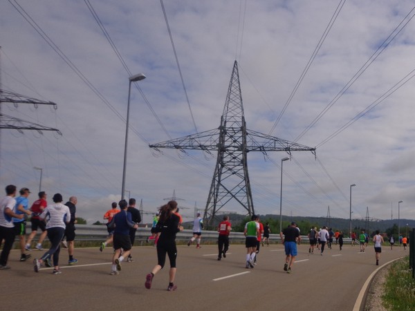 Nun die Rückseite der Altstadt, eine Spitzkehre und es folgt die erste Tränke. Kurz vor km6 werden wir mit „Eye of the Tiger“ unterhalten. Dann wird die Strecke wieder breiter, es geht raus ins Gewerbegebiet. Km8 nach 46min, weiter im Gewerbegebiet. Hier wird gebaut, wer ein Auto kaufen will, hat eine große Auswahl.