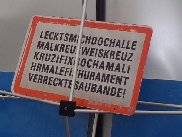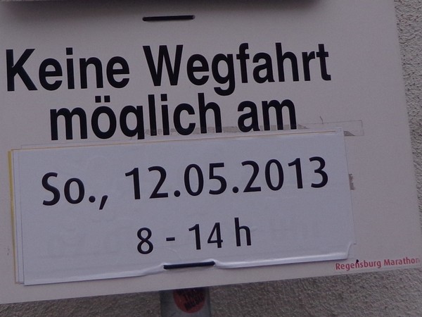 Einzige Hinweise auf die morgigen Laufveranstaltungen sind Hinweisschilder an Parkplätzen, dass am 12. 5. von 8 – 12h kein Wegfahren möglich wäre.