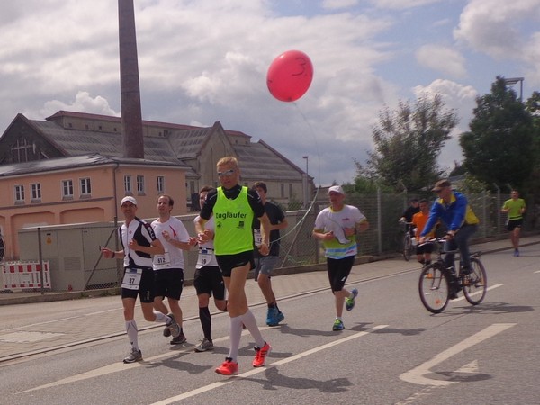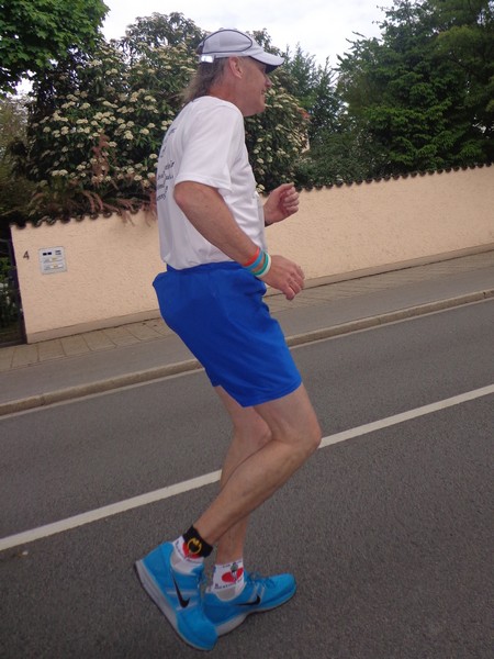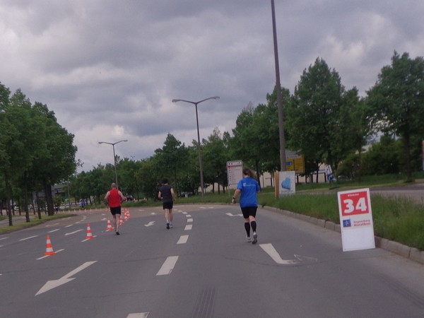 Km13, hier bin ich ganz nahe bei Schwabelweis! Weitgehend flache Kilometer und je näher man der Innenstadt kommt, umso mehr Resonanz vom Straßenrand. Bei km15 gibt es auch Coca Cola, außerdem Wasser, Iso und Bananen. Vorhin war mir der 1h59er-Ballon zu langsam, nun an der Labe überholt er mich wieder.