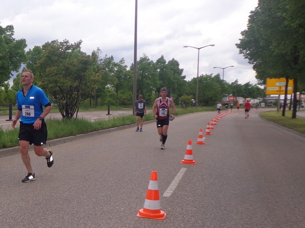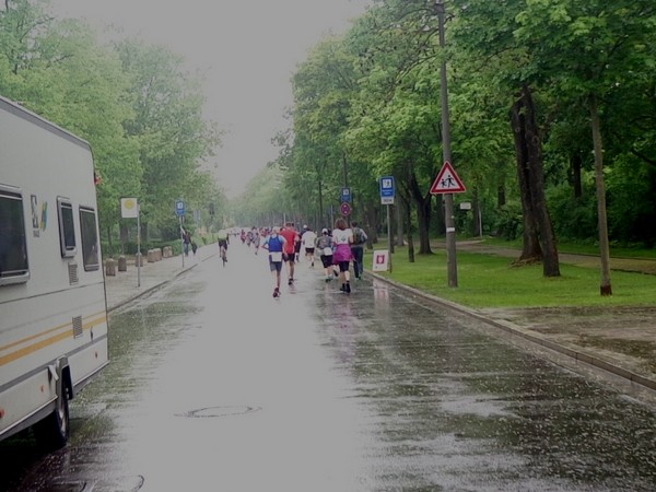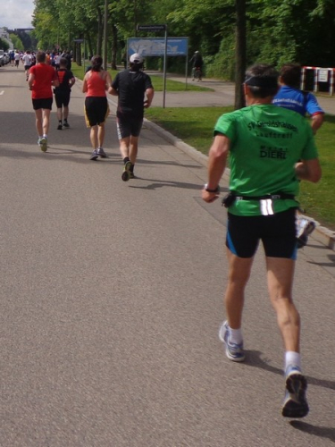 An einer T-Kreuzung laufe ich geradeaus, die einen biegen in die Reifenteststrecke von Continental ein, die schnelleren haben diese Schleife bereits hinter sich und laufen schon stadteinwärts.