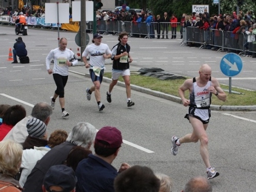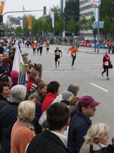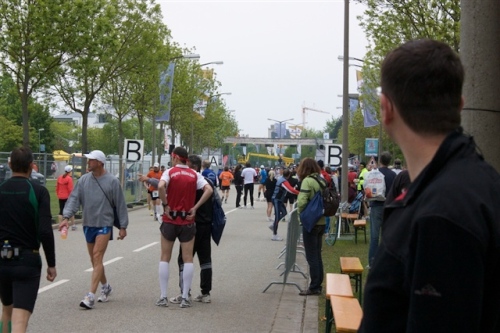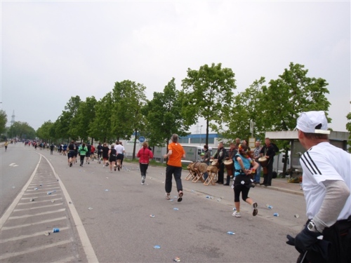 Bei KM 31,5 füllte sich dann noch einmal die Strecke. Zu den Marathonis gesellten sich die Halben, die hier ihren Wendepunkt erreicht hatten. Die meisten waren nicht so schnell wie wir und so konnten wir dauernd überholen, was durchaus motivierend war. Tolles Timing der Organisatoren also. Gerade wenn die Beine schwerer werden, ist man ja nicht gerne alleine unterwegs.