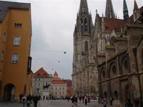 Hier war die Stimmung noch euphorischer. Vor lauter Begeisterung vergaß ich das Fotografieren und so entging mir am Haidplatz der Gasthof „Goldenes Kreuz“. Hier soll einer der berühmtesten Regensburger Bürger gezeugt worden sein: Don Juan d’Austria der „Retter des Abendlandes“ , unehelicher Sohn Kaiser Karl V. und der Gürtlerstochter Barbara Blomberg. Berühmt machte ihn die Seeschlacht von Lepanto 1571, als er mit der spanisch-venezianischen Armada die türkische Kriegsflotte vernichtend schlug.