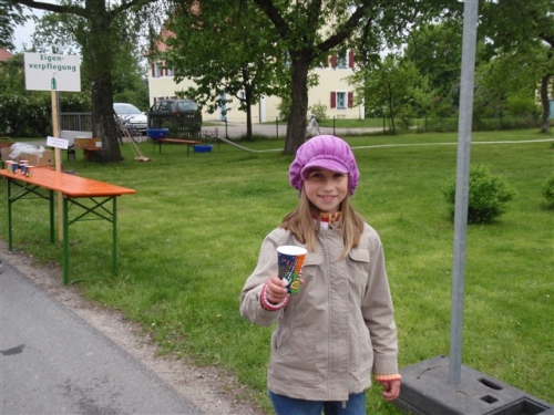 Verpflegungspunkte an der Strecke und Verpflegung im Ziel. Gereicht werden Elektrolyte und Wasser. Dazu Bananen- und Müsliriegel.