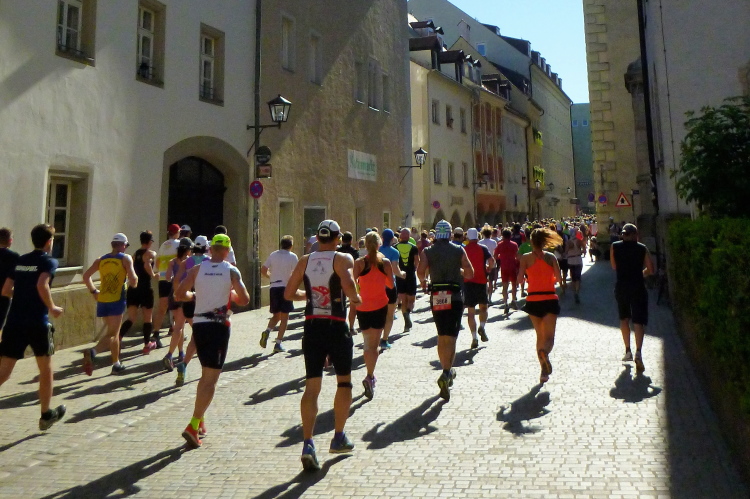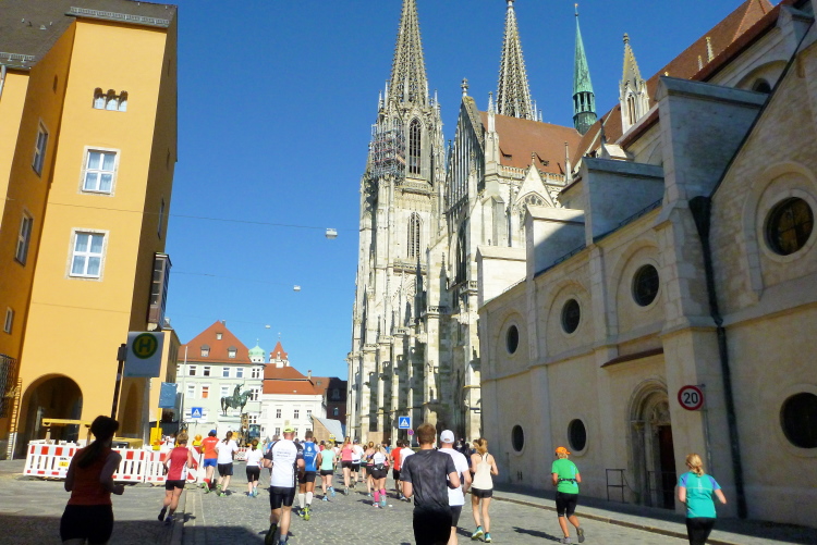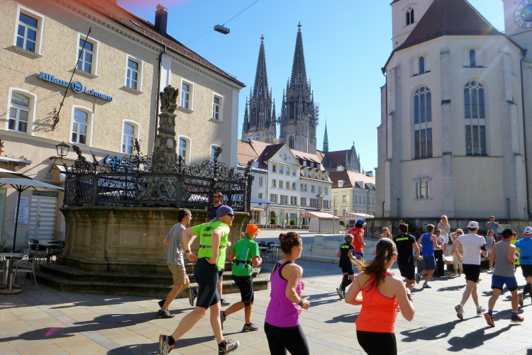 „Laufen im Weltkulturerbe“, so heißt das Motto nicht nur auf der Ausschreibung, sondern es ist real und wirklich: Der Kurs führt kreuz und quer durch die historische Altstadt, die zusammen mit Stadtamhof seit 2006 auf der Liste des UNESCO-Weltkulturerbes steht. Eine Schleife führt weiter in den Osten Regensburgs mit einem speziellen Zuckerl. Ein schönes Sammelsurium auf der Piste findest du da. Von Musik aus allen Richtungen, vielen Zuschauern und Remmidemmi in der Altstadt bis hin durch eher ruhigere Teilen an der Straubinger Straße und im Businesspark sowie einem Spektakel auf einem Asphaltring. Doch dazu später mehr.