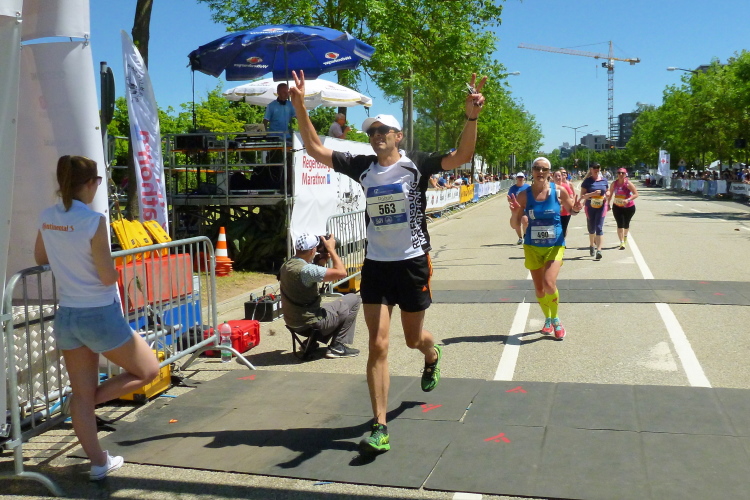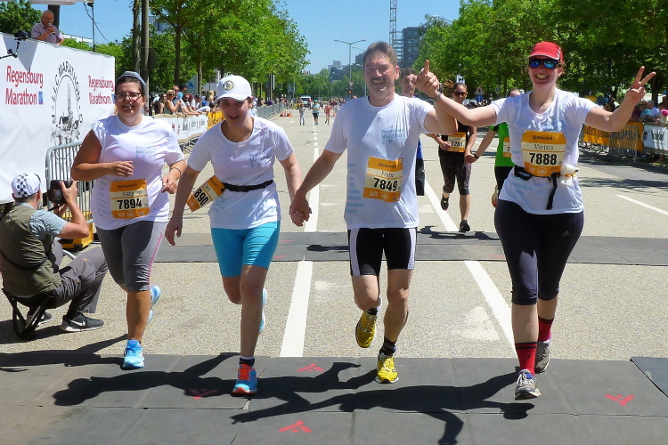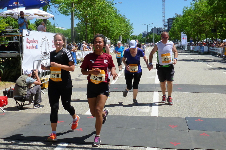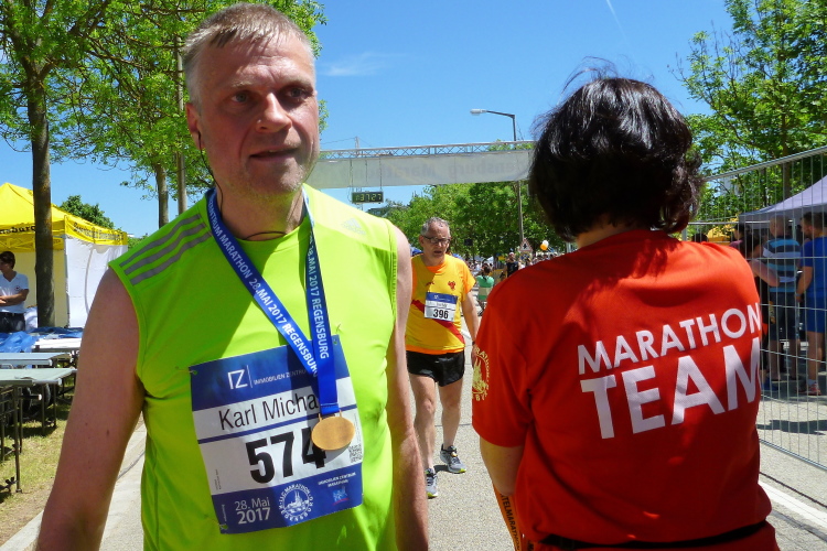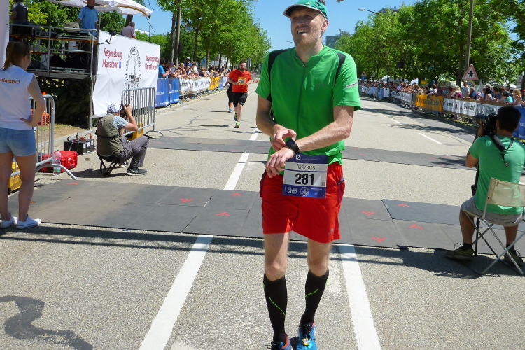 Ein schöner Event war der heutige Tag für alle. Bis zur nächsten Teilnahme hier in Regensburg will ich nicht wieder vier Jahre warten. Nur so heiß wie im Backofen heute braucht es nicht mehr werden. Gemeldet waren über 600 Marathonis. Ins Ziel gekommen sind lediglich 456, mehr als üblich sind gar nicht angetreten, haben auf kürzere Strecken umgemeldet oder sind ausgestiegen. Bei der Hitze keine schlechte Wahl. Aber wer gekommen ist, den hat eine familiäre Veranstaltung erwartet. Gut gemacht, liebe Regensburger. Ja und der Jahn auch, denn der hat sich zwei Tage später für die Zweite Liga qualifiziert.