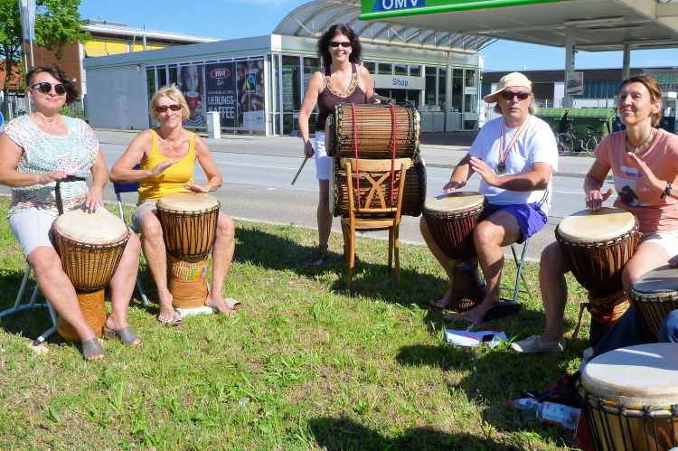 Auf einer Wohnstraße unterqueren wir die Nibelungenbrücke, eine Hauptverkehrsader im Zentrum, die den Nordteil mit dem Südteil der Stadt verbindet. Eine Band bietet uns Countrymusik an. Einer bearbeitet seine Drums, der nächste den Bass und der Mann an den Guitars hat noch eine Fluppe in der Gosche. Ich muss lachen. Die Feuerwehrleute an der nächsten Kreuzung haben sich auch versorgt. Einer trinkt sein Bier, die Flasche mit einer Papiertüte getarnt. Das sehe ich sofort. Ich muss mir den Ort für die zweite Runde merken, da gehe ich dann schnorren.