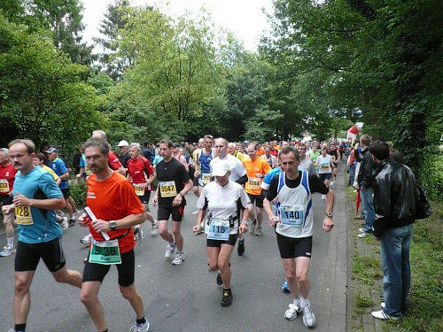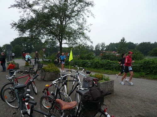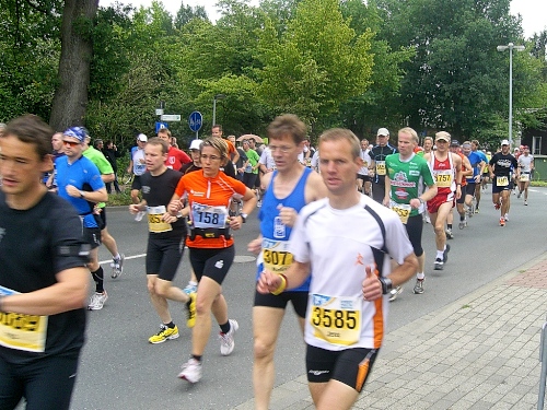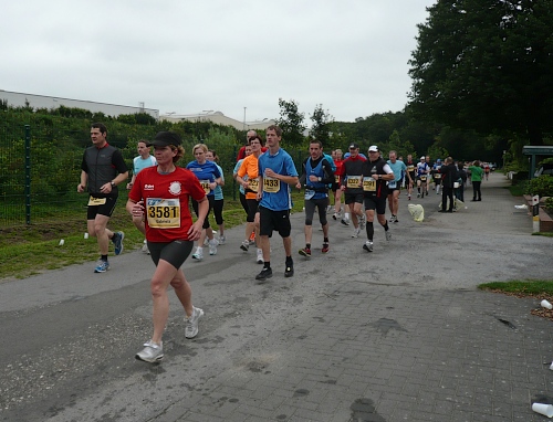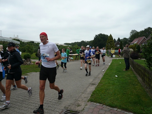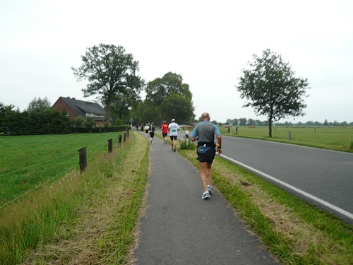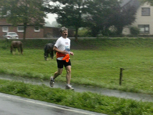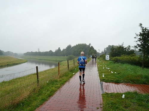 Wie immer bei einem Zweirundenkurs beginnt jetzt die Einsamkeit des Marathonis. Weit vor mir und weit hinter mir gibt es noch Läufer. Ich lasse jetzt bei dem Regen die Kamera in der Tasche, denn die Bilder werden jetzt nur noch verschwommen.