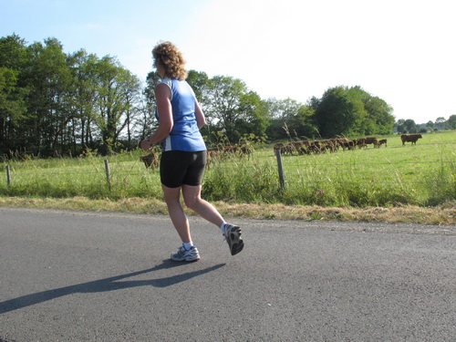 Wieder laufen wir über freies Feld. Getreide und Kartoffeln werden bevorzugt angebaut und auf saftig grünen Wiesen weiden Pferde und Rinder. Zuvor hat beißender Geruch auch zwei Schweinezüchter verraten, obwohl keine Sau zu sehen war.