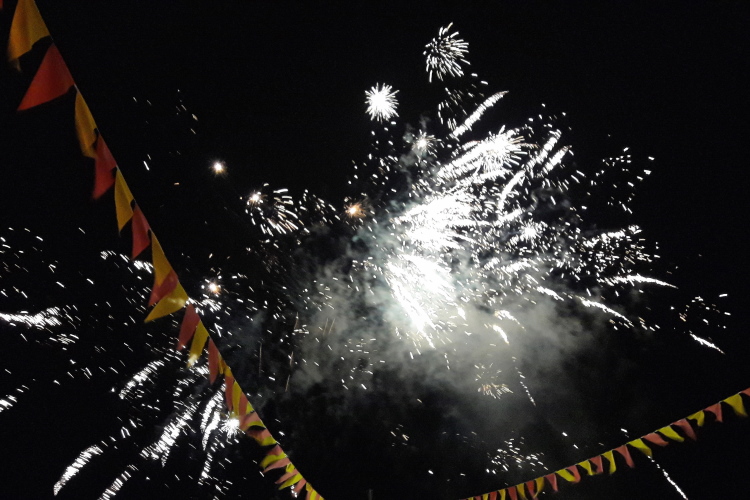 Es gibt Freibier und eine schöne Medaille, was will man mehr? Eine ausgiebige Dusche und danach eine ordentliche Fete! Die genießen wir, wieder besser duftend und unverletzt, und feiern mit vielen anderen Aktiven, Angehörigen und Helfern eine beschwingte Marathon-Night-Party. Der musikalische Top-Act, die fünfköpfige Band „Skyfire" mit ihrer Live-Show ist Spitzenklasse und sorgt für eine ausgelassene Stimmung. Um 23 Uhr findet die Siegerehrung des Marathons statt. U.a. wird Elias Sansar für seinen dritten Sieg in Folge geehrt, der regionale Laufheld ist u.a. auch Seriensieger beim tollen Hermannslauf, den jeder mindestens einmal mitgemacht haben sollte. An den vielen Zelten und Ständen kann man es sich gutgehen lassen und um 23:30 Uhr überrascht man uns noch mit einem schönen Feuerwerk. Leute, haltet Euch diesen Sponsoren warm!