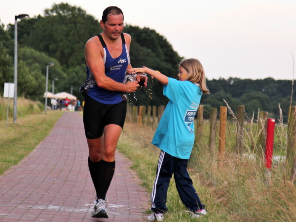 Bei km 12 in Winkum riecht es dann nach Bratwürsten und Bier. Wieder feiert eine große Menschenmenge Marathon, wie sonst nur Fußball. Neben der Wasserwanne steht ein Glas Pils. „Komisch, das will keiner haben!“, wundert sich ein Helfer. „Nö, logisch!“ wollte ich sagen. „Joe ist ja nicht hier.“ Aber der Helfer würde es nicht verstehen und ich will es nicht erklären. Also weiter.