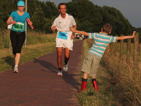 Eigentlich schade, dass ich nur eine Runde laufe. Aus Erfahrung weiß ich, dass es auf der zweiten Runde zwar etwas ruhiger, dafür aber noch schöner ist. Gerade an Tagen wie heute wird die Landschaft bei untergehender Sonne in ein sagenhaftes Licht getaucht. Gleich gehe ich zurück auf den Deich, um diese Atmosphäre für Euch einzufangen (siehe Impressionen).