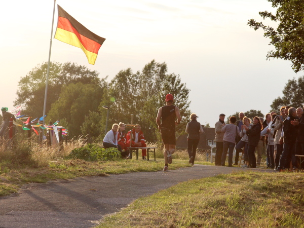Dann allerdings ist man an der Schelmkapper Brücke und wieder hellwach. Die Samba-Trommler sind schon von weitem zu hören. Die Zuschauer brüllen Dich die kleine Bodenwelle zum Deich hoch, als ginge es um die Bergwertung. Verrücktes Volk.