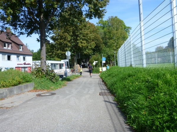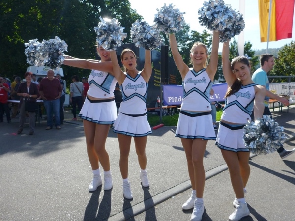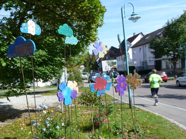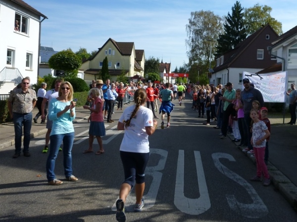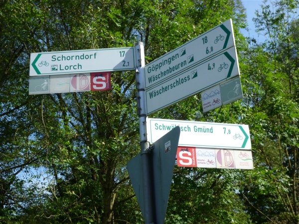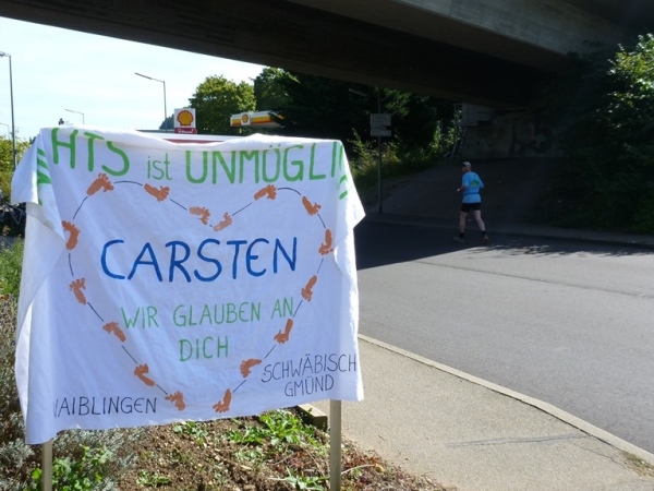 Auf der zweiten Hälfte setzt sich der Wechsel zwischen durchaus netten Abschnitten und solchen mit überschaubaren Reizen fort, wobei die zweiten Cheerleader in Plüdershausen eindeutig in die erste Kategorie gehören. Zum wiederholten Male überqueren wir nicht nur die Rems, sondern auch die autobahnähnlich ausgebaute B 29, eine Hauptschlagader des nach und von Stuttgart führenden Verkehrs. Flüsterasphalt wurde hier in den vergangenen Wochen aufgetragen, was trotz Sommerferien für lange Staus sorgte, wie man mir erzählte. Ups, da kommt doch tatsächlich eine kurze Wendepunktstrecke! Vermutlich gleicht diese ein paar bei der Vermessung aufgefallene fehlende Meter aus.