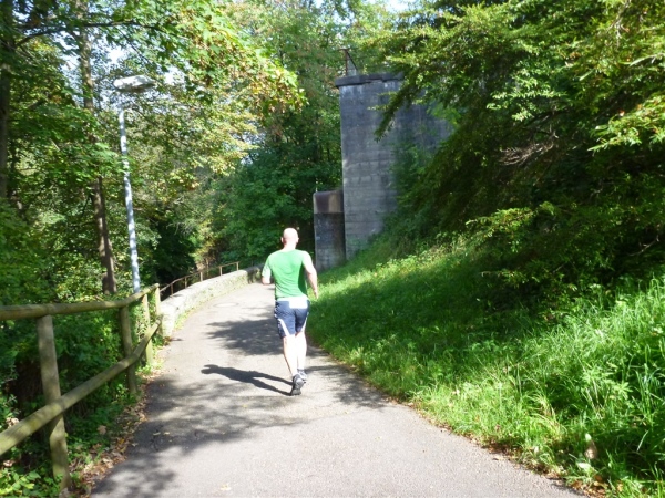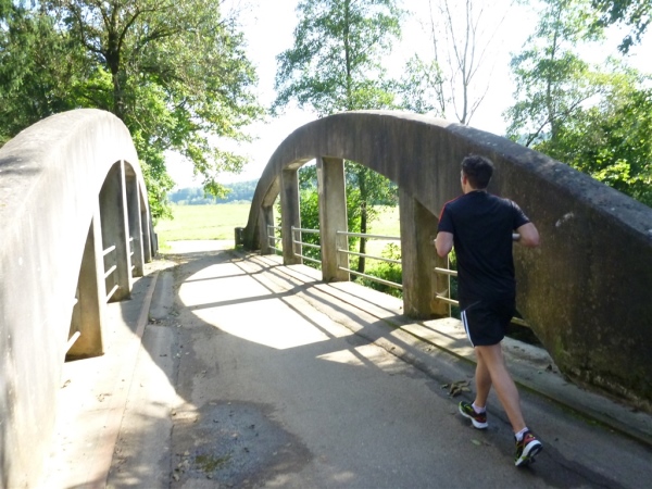 Die km schreiten voran. Gut, sie fliegen nicht unbedingt an mir vorbei, aber doch folgt Markierung auf Markierung. Lorch. Noch neun km, keine Stunde mehr, wenn alles so bleibt, wie es ist. Es wäre schon schön und meinem Ego zuträglich, wenn alles wider Erwarten glatt liefe. Die Beine allerdings werden schwerer und schwerer. Ist das anders als sonst? Es fällt tatsächlich schwer mich zu erinnern, wie es sich sonst anfühlt, unangenehme Dinge verdrängt man doch ganz gerne. Obwohl gefühlt immer langsamer werdend, bin ich nur noch am Überholen. Die Temperatur dürfte sich bei etwa 25° eingependelt haben, weite Abschnitte liegen in der prallen Sonne und ich bin wieder einmal froh, Hitze gut zu vertragen.