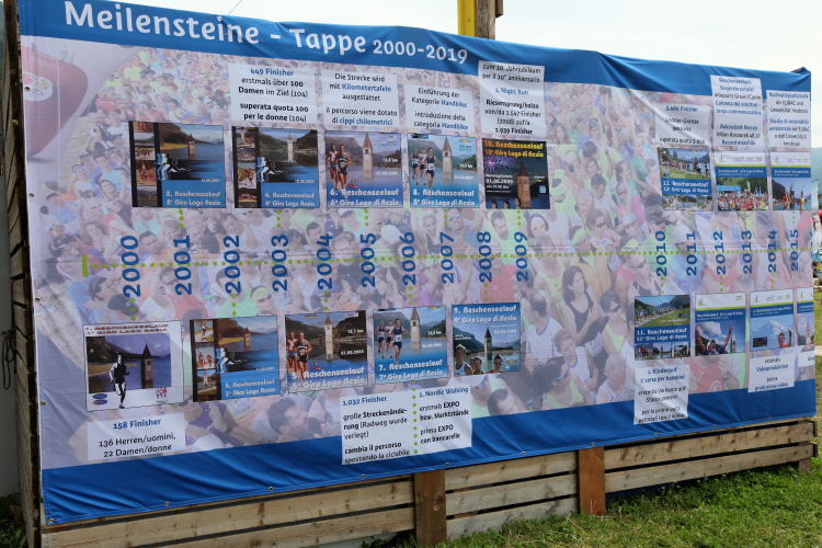 Aber dann gibt es ja noch diese sagenhafte Laufveranstaltung, die eigentlich keine ist. Der Reschenseelauf ist genau das, was viele Events sein wollen: Ein Festival. Bereits am Vormittag (Start ist um 17.00 Uhr) reisen die Läufer meist mit der ganzen Familie und mit Freunden an und bevölkern das riesige Festivalgelände. Man sieht Wohnwagen und Camper aus halb Europa. Esscheint, als kenne jeder jeden. Ein Lauffest unter Freunden.